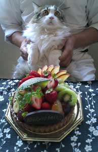 近所の美味しいケーキ屋さんのタルトでお祝いです。