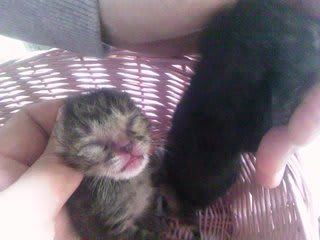 ヒトの子でも生まれたては「猿みたい」って言うように、子猫たちも今は「???」なお顔です。