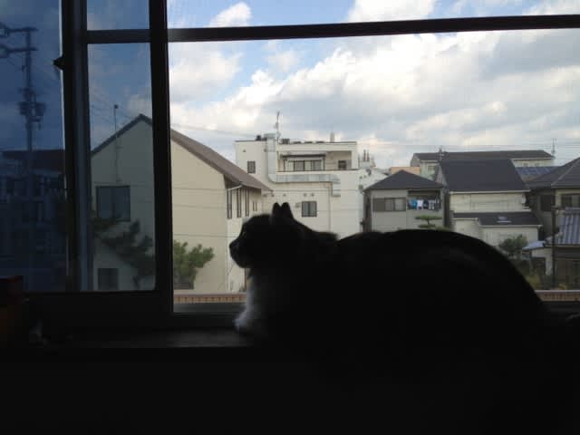 ドア越しに様子を見たらうちのブロック塀の上で鳴いていた。