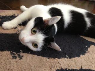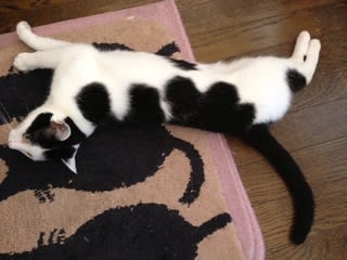 キッチンマットの上に「にょろ~ん」と寝ころびます。