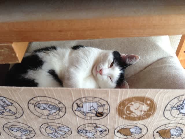 ますちゃの寝床 猫談議 2013.07.012025.08.16 丸見えじゃ落ちつかないかと思って目隠しに バンダナを貼ってあるんだけど… ついつい覗き見ちゃうんだな、これが。 おかしゃん、見にゃいでよ。 見るにゃ~‼