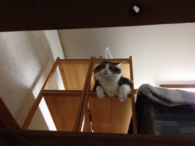 猫談議昨日、娘のベッドに寝転がってヘタな歌を歌っていたら、ドスドスドスとぐりこがやってきて二段ベッドの上から見下ろす、見下ろす。