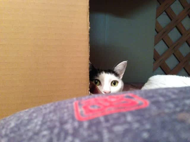 リビングにおとーぽんがいる時は、いつもこんな風に様子を伺っています。