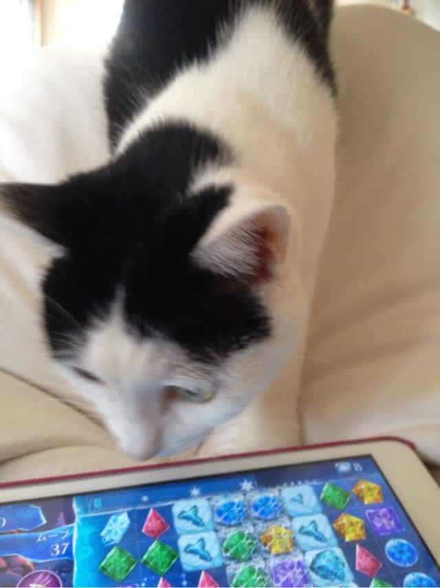 ずいずい 猫雑貨 2014.05.082025.08.16 朝、ベッドの中でもぞもぞしていたら ますこが、ずいずいと布団の海を乗り越えてやってきた。 ず… すずい… ずずいずい。 なんだ、ゲームに興味があったのか。 さて、これはなんのゲームでしょうか、れりごー(笑)