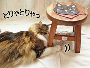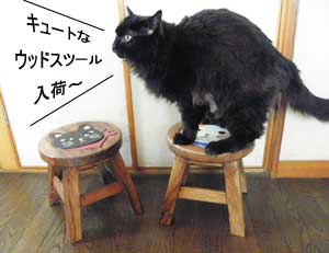 女優にゃんズが頑張って協力してくれたのでウッドスツールがより可愛い(・・・と思う。)