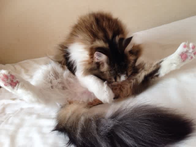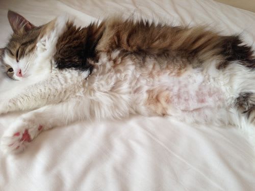 サマーカットしたのでおなかも舐めやすいにょ。