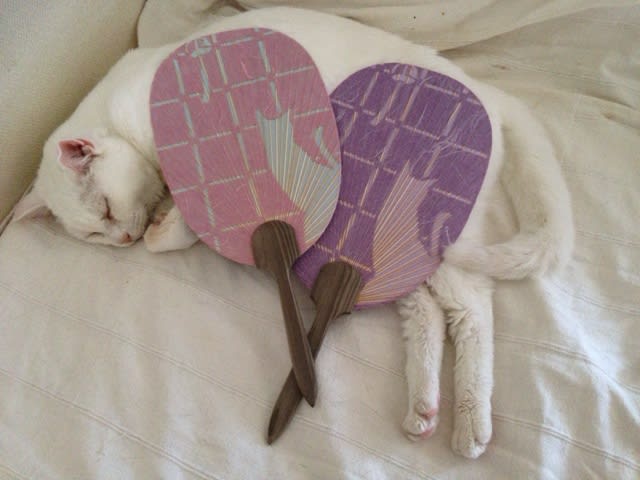 猫柄の扇子はたくさん扱っているのですが、うちわは初めてかも。