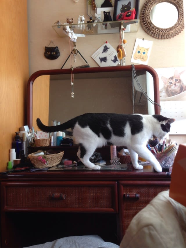 お顔が、余り好みじゃなかった(ごめんなさい(;^_^A)んですけど、こちらで、目にするうちに、だんだんと好きになってきました。にしても、ずら猫ってのには、分かってても、つい、くすって笑っちゃいます。ごめんねU+1F605