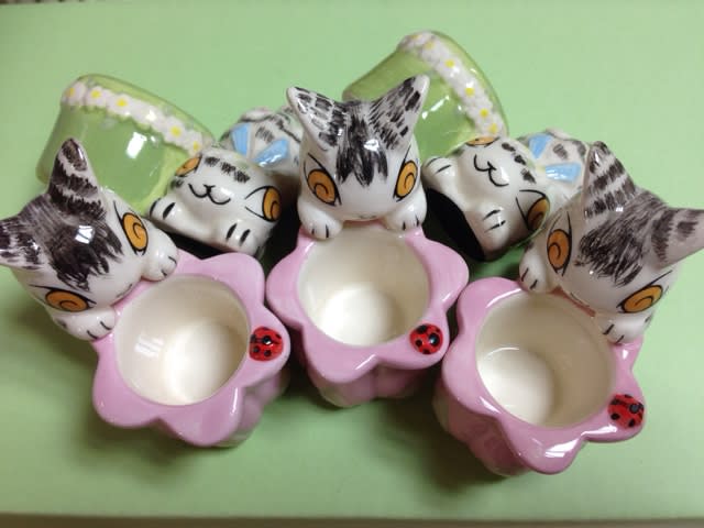 陶器に手作業で着色しているものだから、1体1体模様が違う。