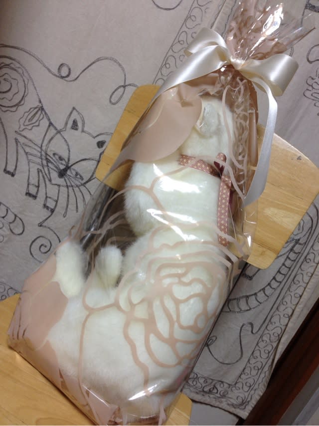 先日いただいぬいぐるみのラッピングに添えるメッセージは少し変わっていました。