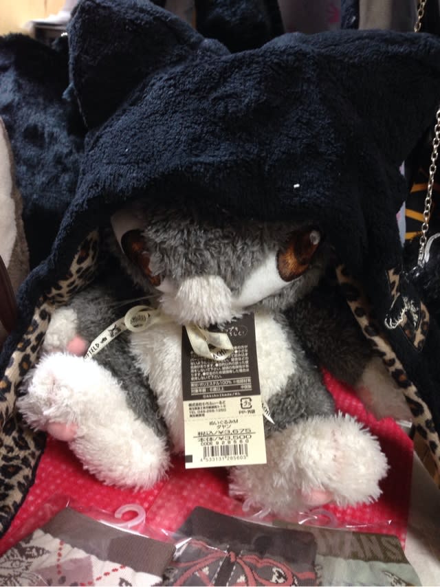 ぬいぐるみダヤンが被っているのは猫耳帽子つきマフラー。