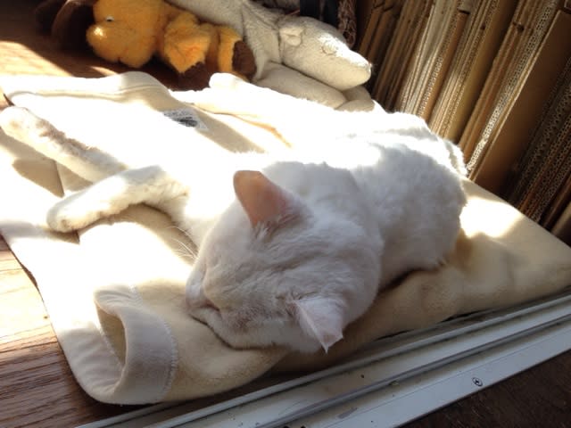 汚れた手足を熱いタオルで拭いて、ごはん食べさせて、きれいに整えた寝床に放り込んで7時過ぎまで爆睡眠。。。