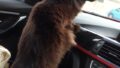 表道路に面したガラスドアの前で外を眺めるKILIにそっとカリカリを差し出すと・・・