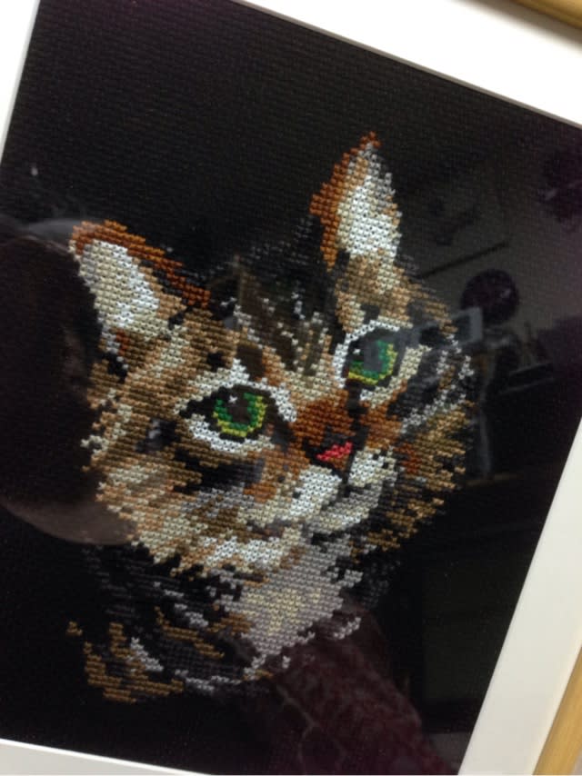 こちらは徳島のお客様がクロスステッチでちくちくしてくださったニコル像。
