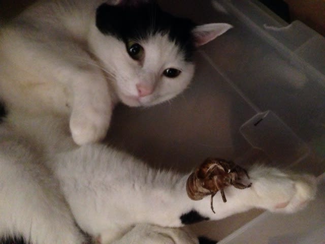 猫談議今朝、ゴミ捨てに行ったらご近所さんの壁にセミの抜け殻。