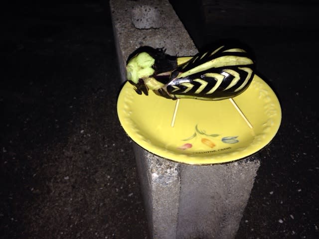 どうにも普通のナスでは気がすまないらしい娘さん作のマシンみたいな牛に乗って
