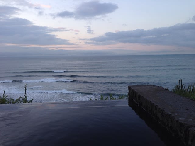 露天風呂も海に面していて、30センチくらいの浅いベッド状の石風呂に寝転んで海と空を眺めることが出来ます