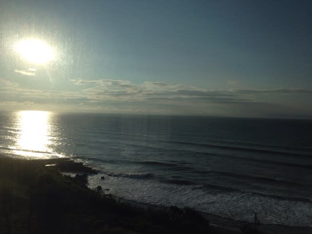 大きな窓から見える海。部屋にはテレビも時計もないので海を眺めるのみ。