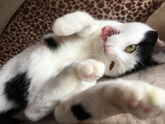 牛柄猫って、あんまり好きじゃなかったけど。。。ますこはかわいがられるオーラを発している。。。