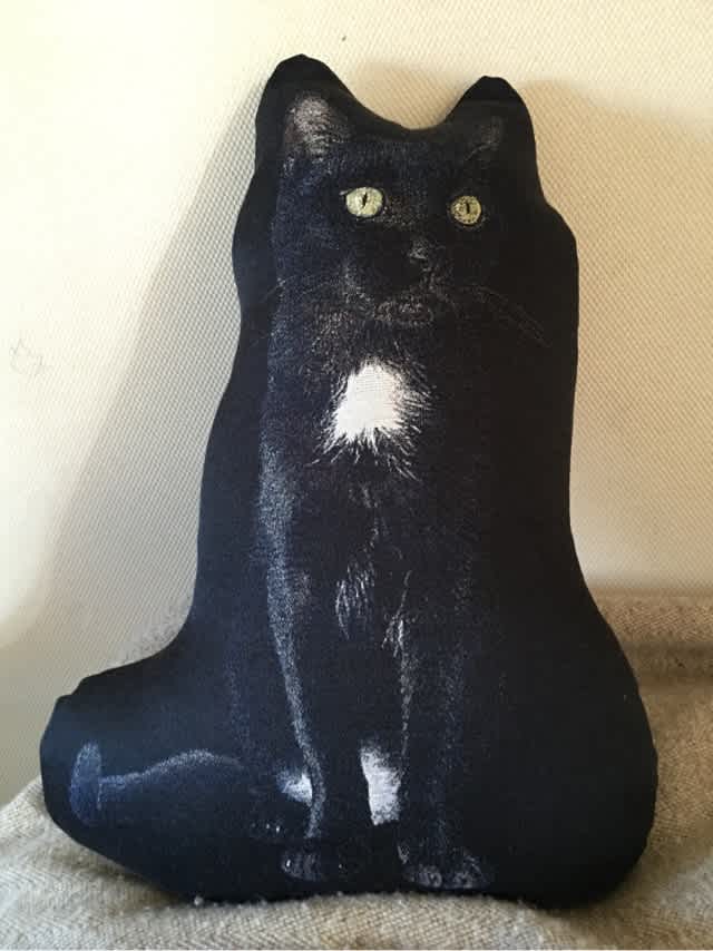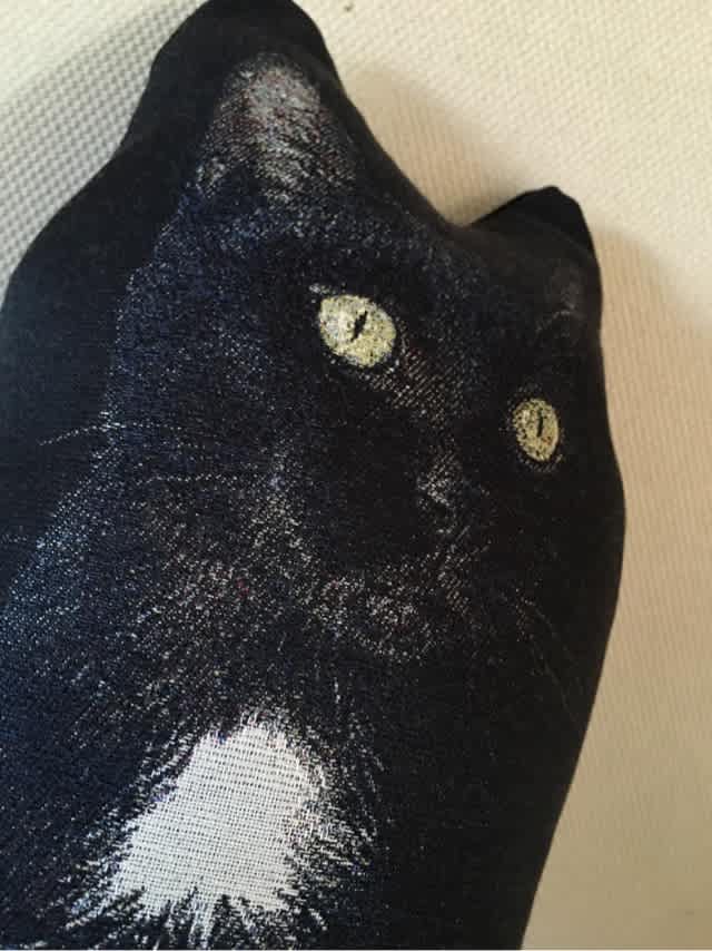 黒猫を黒地に、というオーダーでメーカーさんも悩む悩む。