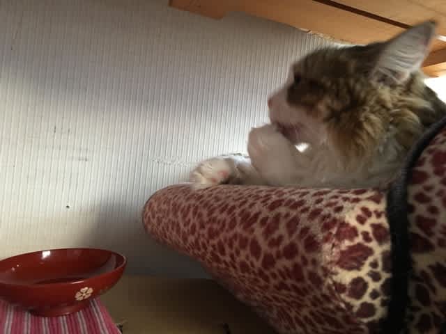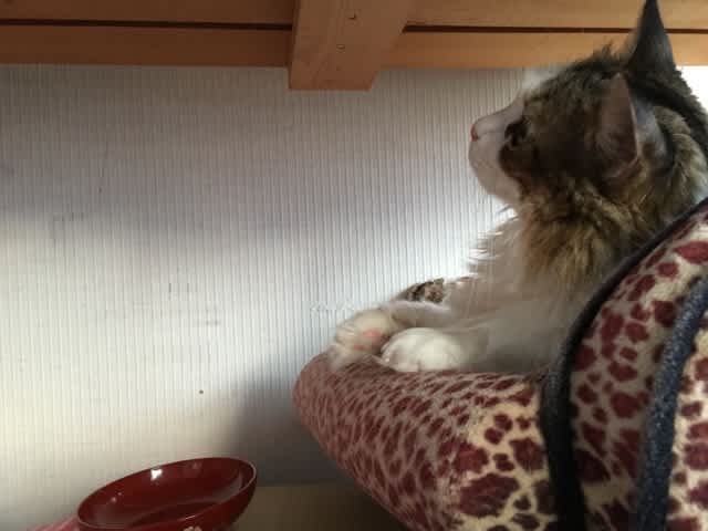 ますこは野良猫時代の名残で、ごはんを食べるときはいつもビクビク。