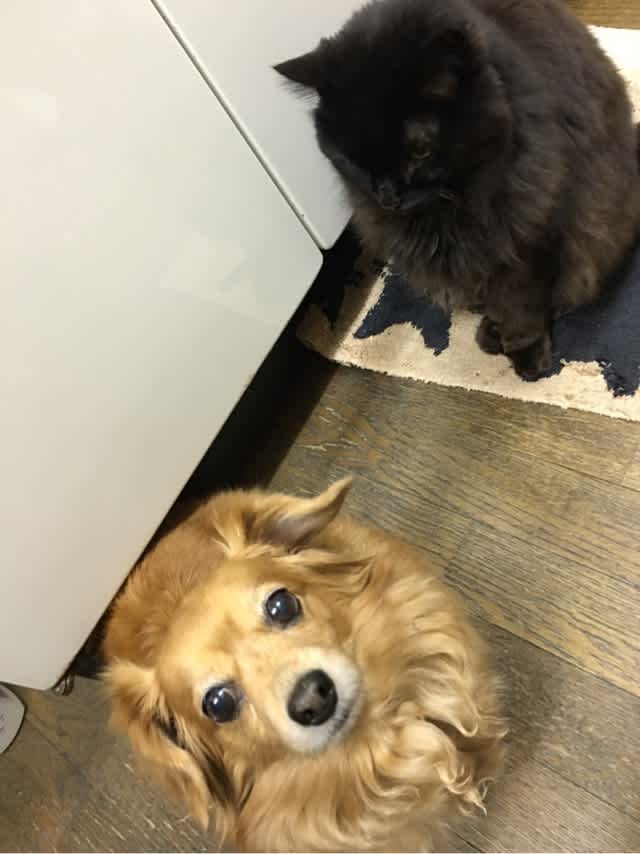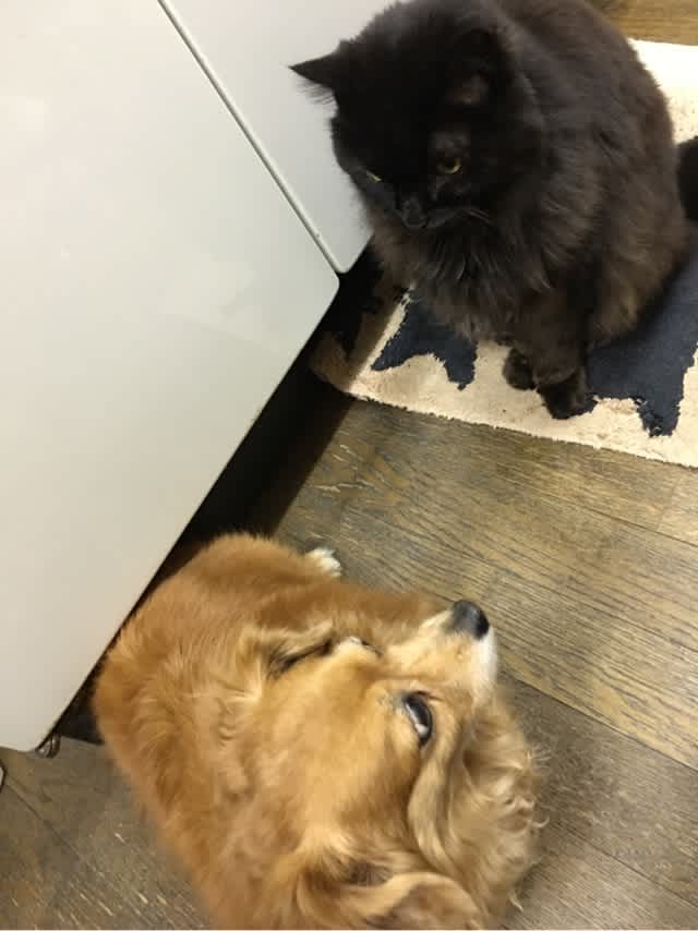 なんで私のごはんくちおが食べんの、とKILIににらまれ中。