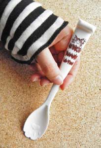 ねこ缶の中身をきれいに取り出せる形状のスプーン。便利にゃよ~!