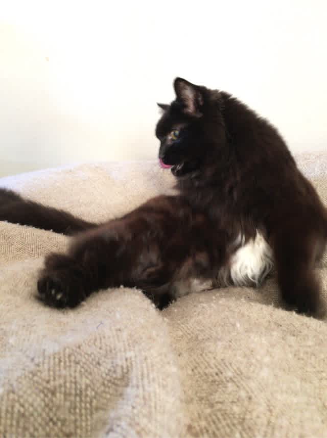吐いたあとに背中を撫ぜていると、もう大丈夫とゆっくり伸びをしながら歩いて見せてくれる。