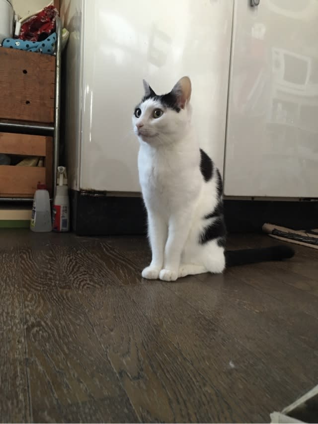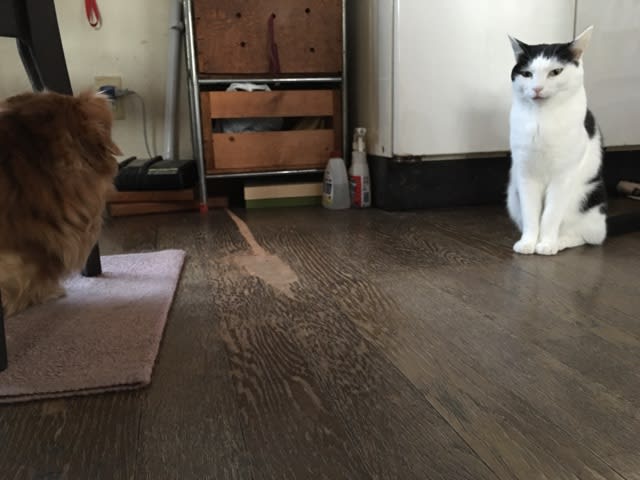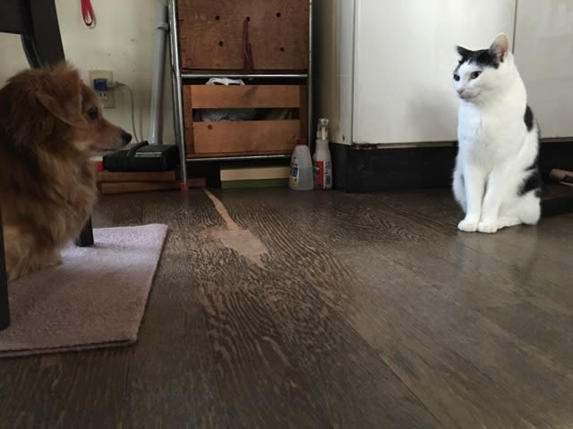 くちおの視線は ますこのむこうにある猫めちの残り。