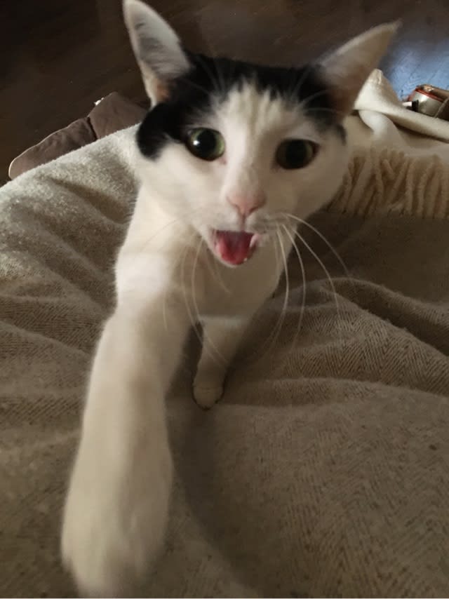 猫談議足元で寝ていた、というか私が目を覚ますのを待っていたますこが…