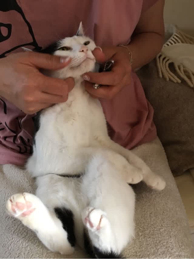 かっわい~い!! 主様と猫さんとの信頼関係が伝わってくるようなエエ写真です~。ノラさんの頃と比べるとほんま大事にされてる家ネコさんの顔になったね、ますこはん。