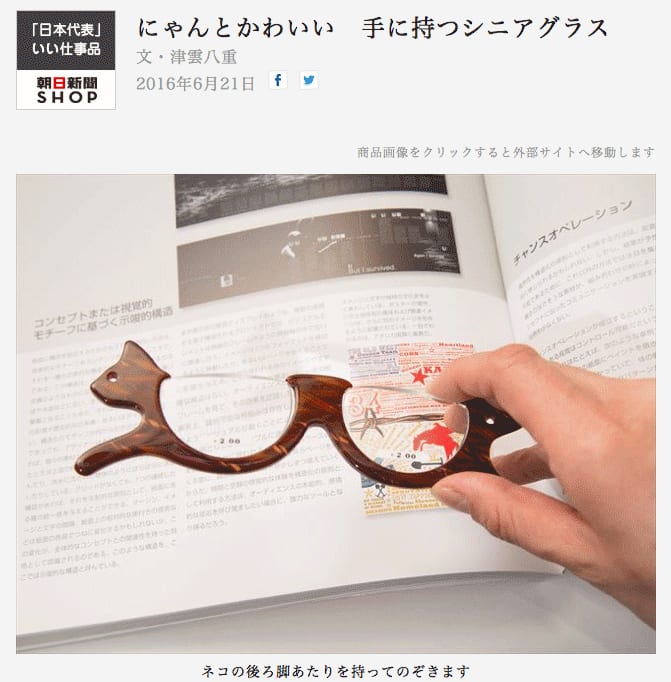 猫雑貨今日の朝日新聞WEBに掲載されていた猫のシニアグラス