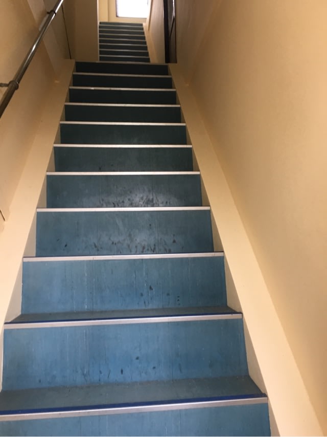 年寄りには厳しい階段。。。2階のドアはムシして3階まで突き進みましょう