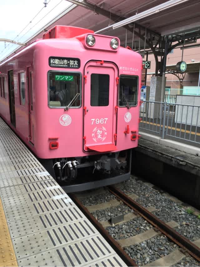 写真は前後して、行くときに和歌山市駅でみた「めでたい電車」