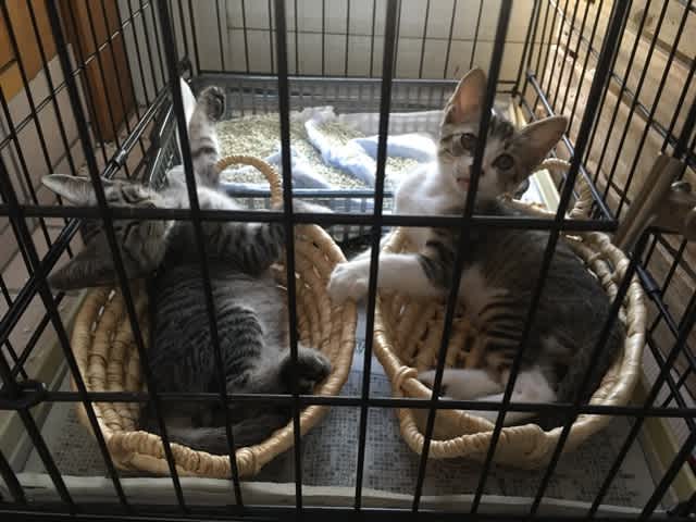 というわけで、推定3ヶ月の男の子2匹、里親絶賛募集中。