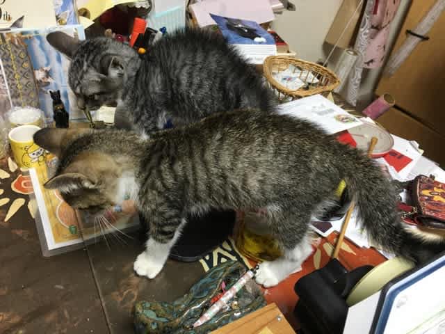 兄弟でも、キジトラ白は暴れん坊で、シルバータビーのサバトラはおっとりさんです。