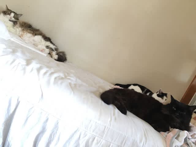 何故か3匹結束して私のベッドに集合のおちゅぼねさま方。