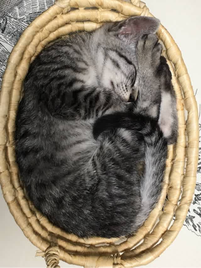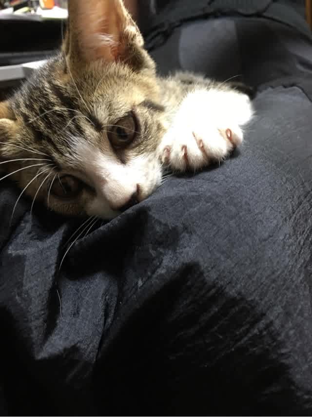 ねこニュウム発散中のサバトラくん。早く良いご縁に恵まれますように。。。