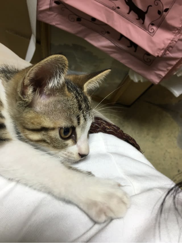 「キジトラ白で尻尾は長く、鼻先の黒い元気な子」という条件を見事にクリア。