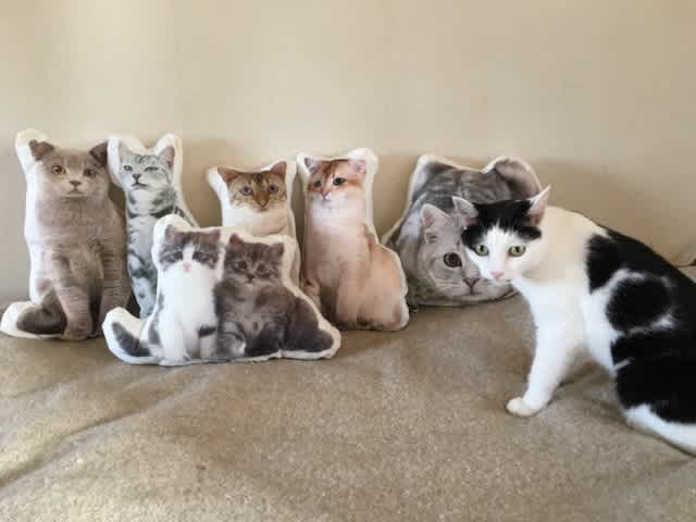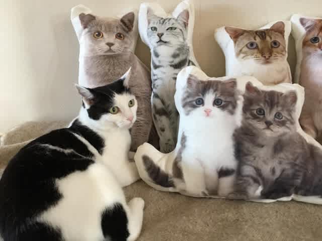 本物の猫の写真を生地にプリントして作られているから、当たり前にリアルなクッションです。