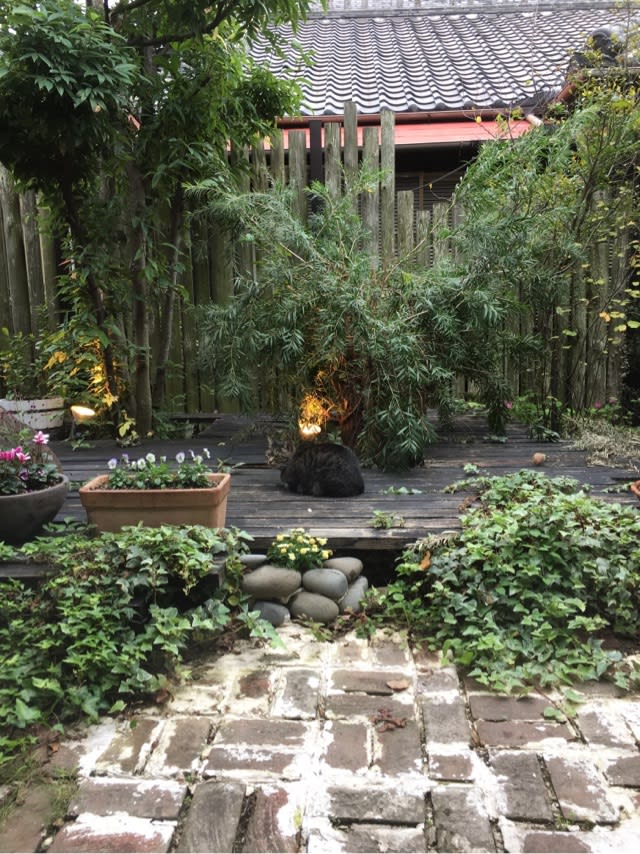 築100年の古民家を改装した店内には中庭があって、ご近所の猫さんがちんまりと…
