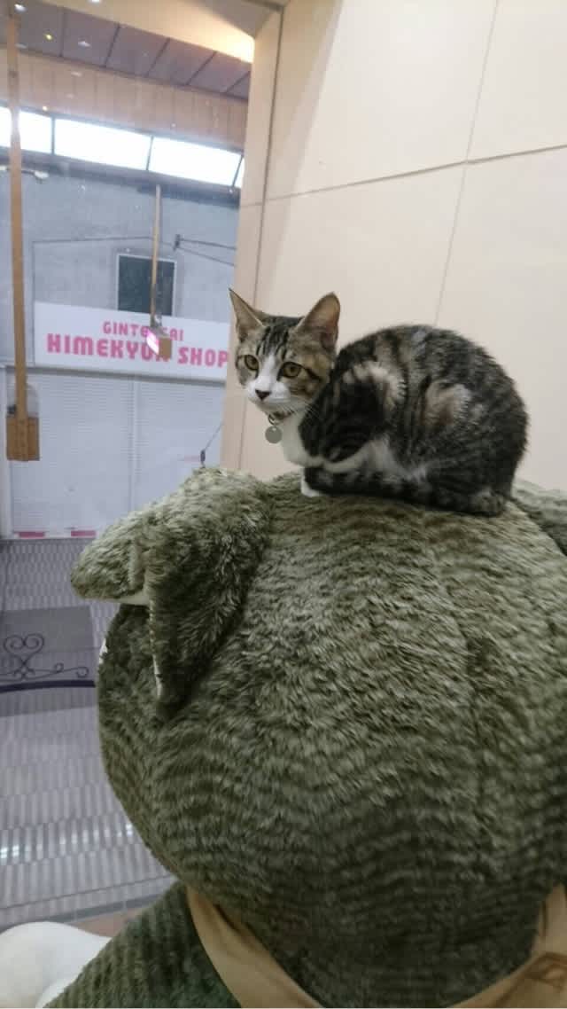 今日もご出勤、ダヤンのぬいぐるみの上がお気に入りだそうです。