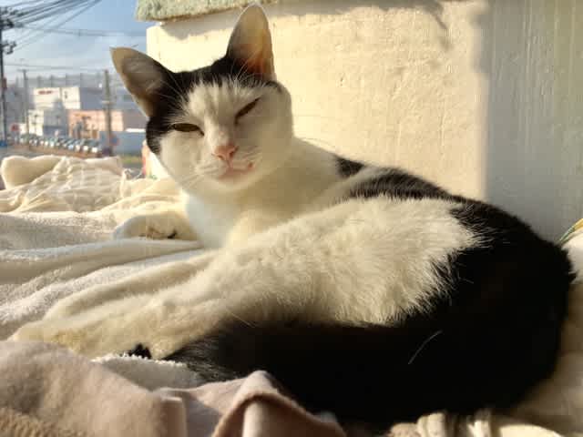 ますこはんエエ顔やね~。「ぬくいなぁ、おかーちゃん」って言ってる?(笑)