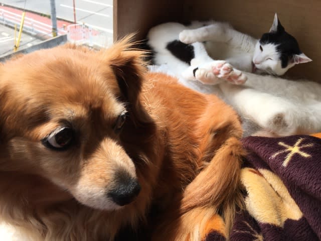 ますこは気がついていなくて毛づくろい。めずらしい2ショットでした。