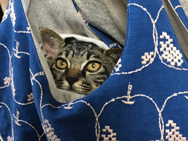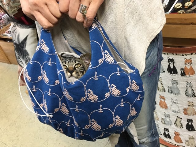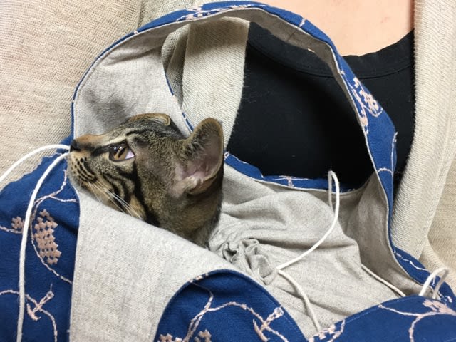 昨日も遊びに来た! こんな袋に、ちょんまり入って。
