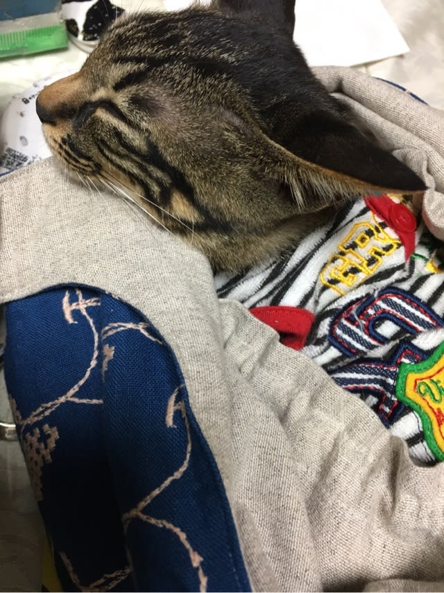 袋は内側が巾着になっていて顔だけだしているので飛び出す心配がないのです。