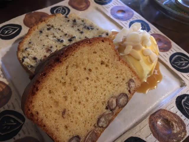 奥が安納芋と黒ゴマ、手前がきなこと豆のパウンドケーキ。