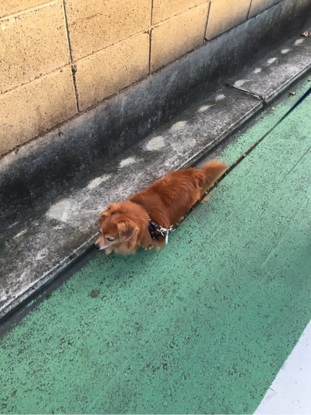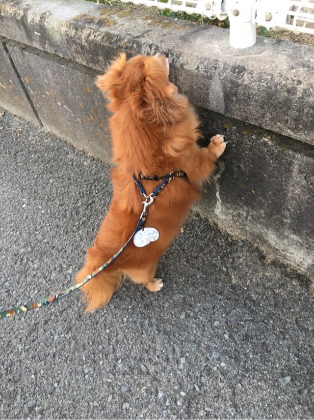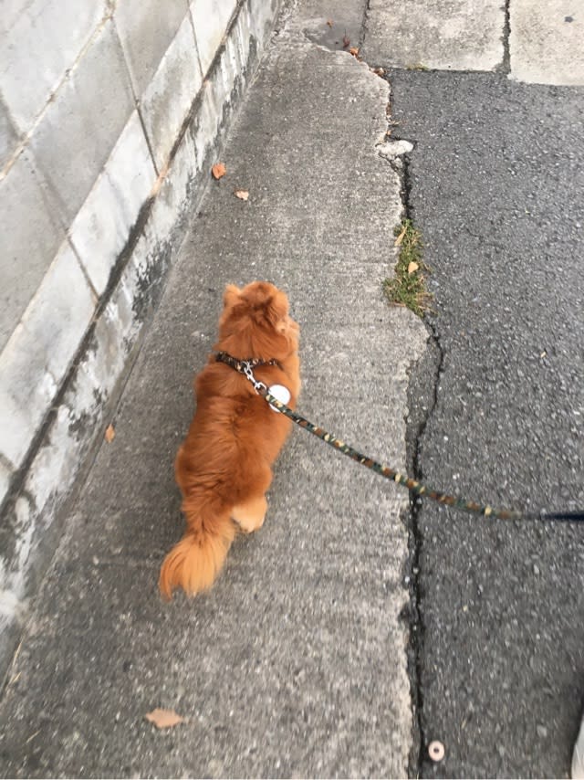 今日は仕事が休みだったので、明るいうちに散歩出来て嬉しいのか、足取りも軽いくちお。