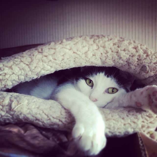 そんなに寒いのなら、と別のベッドの下に湯たんぽを置いたら入ったきり出てきやしない。