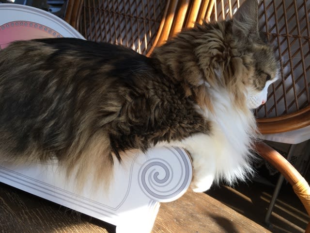 同じ爪とぎでも、ぐりこが乗ればこんな感じにハミ出します。。。